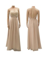 висококачествена бална сватбена рокля в шампанско с полугол гръб